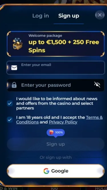 up to €1,500 + 250 Free Spins